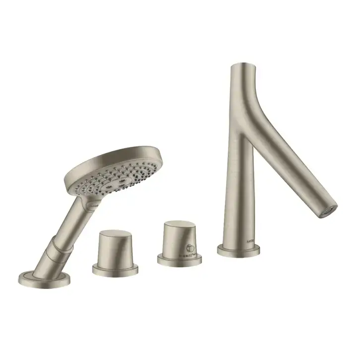 Axor Starck Organic Смеситель для ванны, на 4 отв., термостатический, с ручным душем, цвет: шлифованный никель