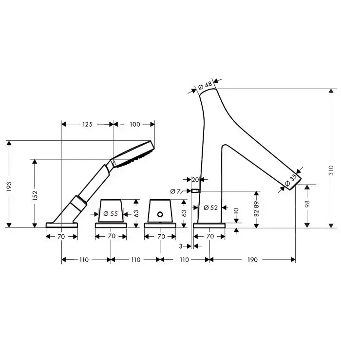 AX Starck Organic Смеситель на борт ванны, термостатический, на 4 отв., с ручным душем,(внешняя часть), цвет: хром