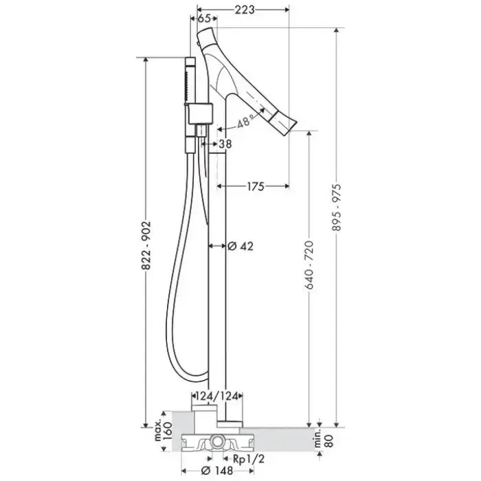 AX Starck Organic Смеситель для ванны, термостатический, однорычаный, с ручным душем, напольный, (внешняя часть), цвет: хром