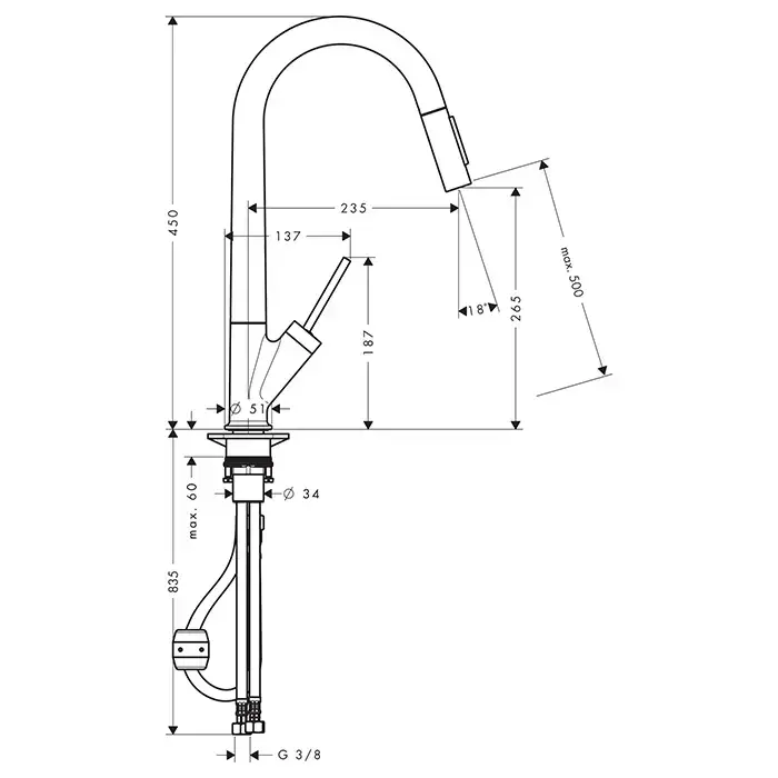 AX Starck Кухонный смеситель 270, с выдвижным душем, Eco, цвет сталь