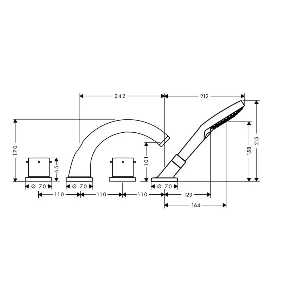 AX Starck Смеситель на борт ванны, на 4 отв., с ручным душем, монтаж на плитку,(внешняя часть), цвет: хром