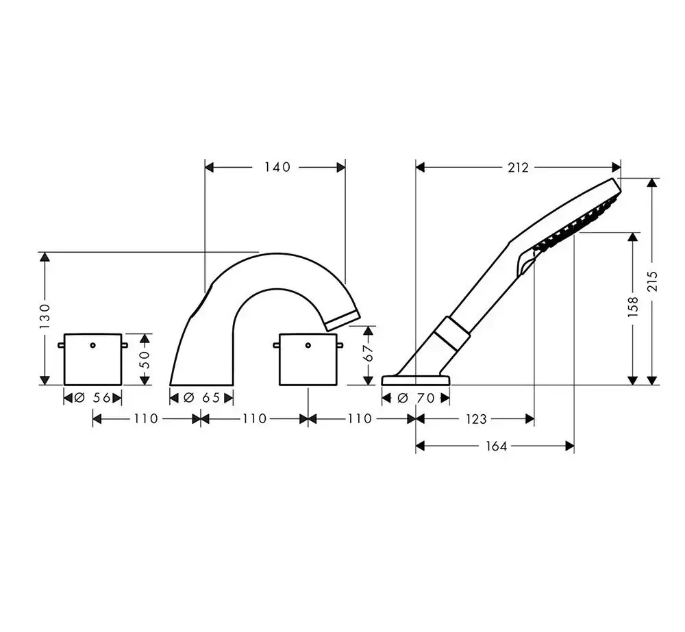 AX Starck Смеситель на борт ванны, на 4 отв., с ручным душем,(внешняя часть), цвет: хром