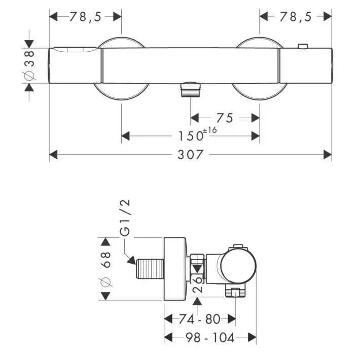 AX Citterio M Настенный термостат для душа, 1 потреб., цвет: хром