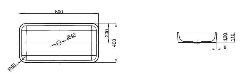 BETTEART Раковина на столешницу, 80х40хh11 cм,эмалированная,без отверстия под смеситель и перелива,с крепежом,цвет белый