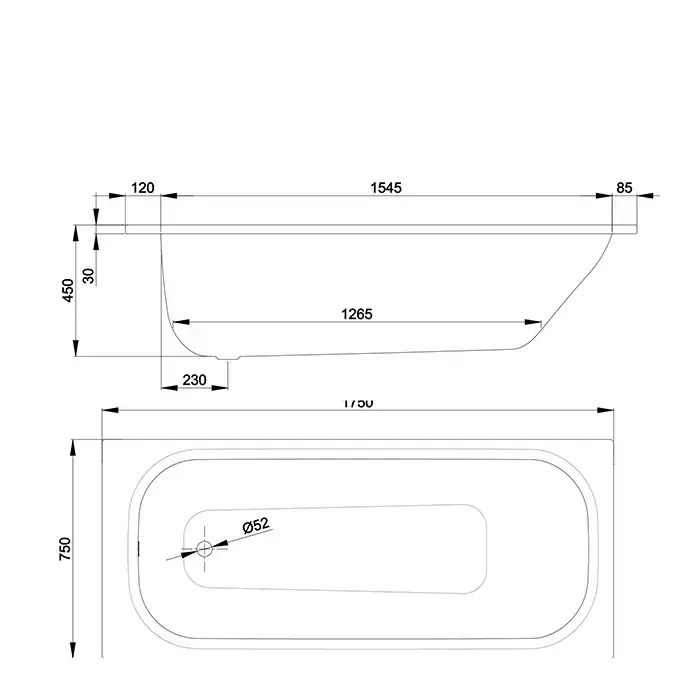 BETTE CLASSIC Ванна прямоугольная 1750х750х450 мм., с шумоизоляцией, цвет белый