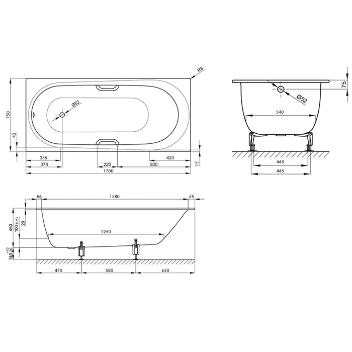 BETTE Comodo Ванна 170х75х45 с шумоизоляцией, белая (СПЕЦцена с нашего склада!)