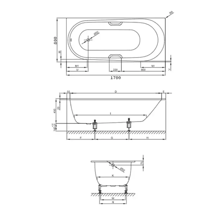 Bette Form 2020 Ванна с шумоизоляцией 170х75х42см, BetteGlasur® Plus, с комплектом ножек, встраиваемая, цвет: белый