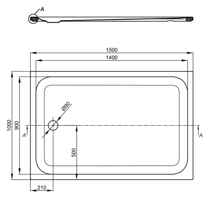 BETTE Душевой поддон 150х100 см, супертонкий 3,5 см, с отв-м слива d=90мм, цвет белый