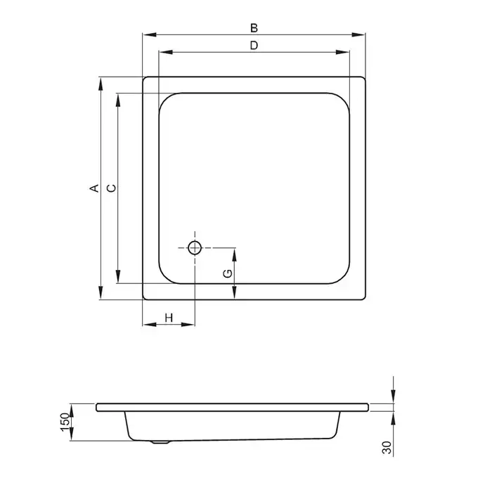 BETTE Душевой поддон, без шумоизоляции, квадратный 90х90хh15см, D52 мм, цвет белый