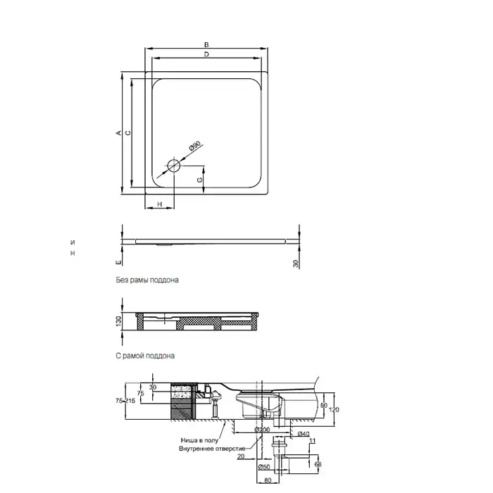 Bette Душевой поддон квадратный 90х90см, белый, спец.модель глубина 2,5см