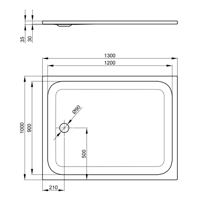 BETTE Душевой поддон прямоугольный 130х100 см, с антислипом ,суперплосский 3,5 см, D90 мм, цвет белый
