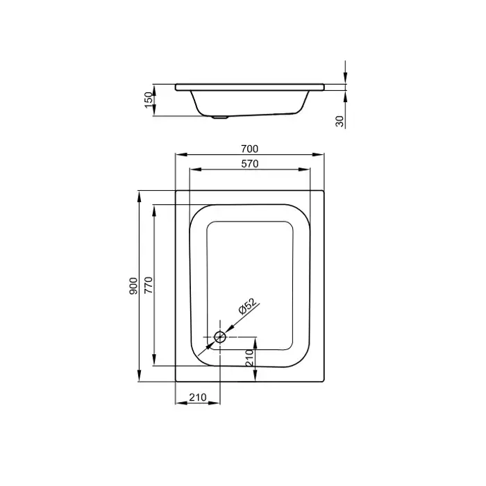 BETTE Душевой поддон прямоугольный 90х70хh15см, D52 мм, цвет белый