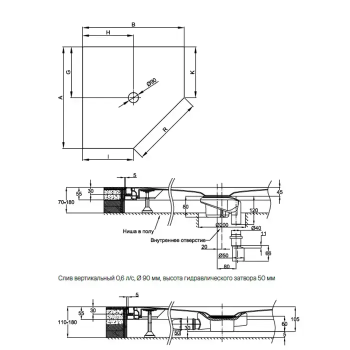 BETTE Floor Caro Душевой поддон пятиугольник 100х100 см, D=90 мм, с шумоизоляцией,цвет белый