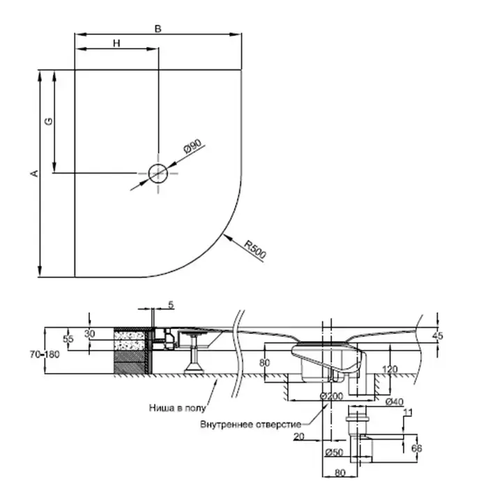 BETTEFloor Сorner Поддон четверть круга 90х90 см, D90 см,с шумоизоляцией, цвет белый