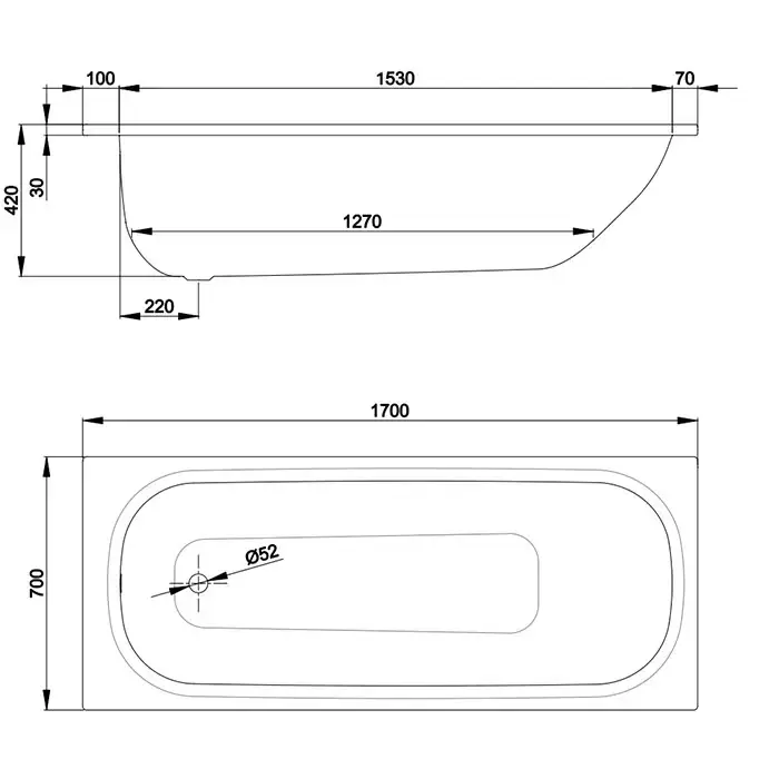 Bette Form 2020 Ванна встраиваемая 170х70х42 см., с системой антишум, антислип SENSE, цвет: белый