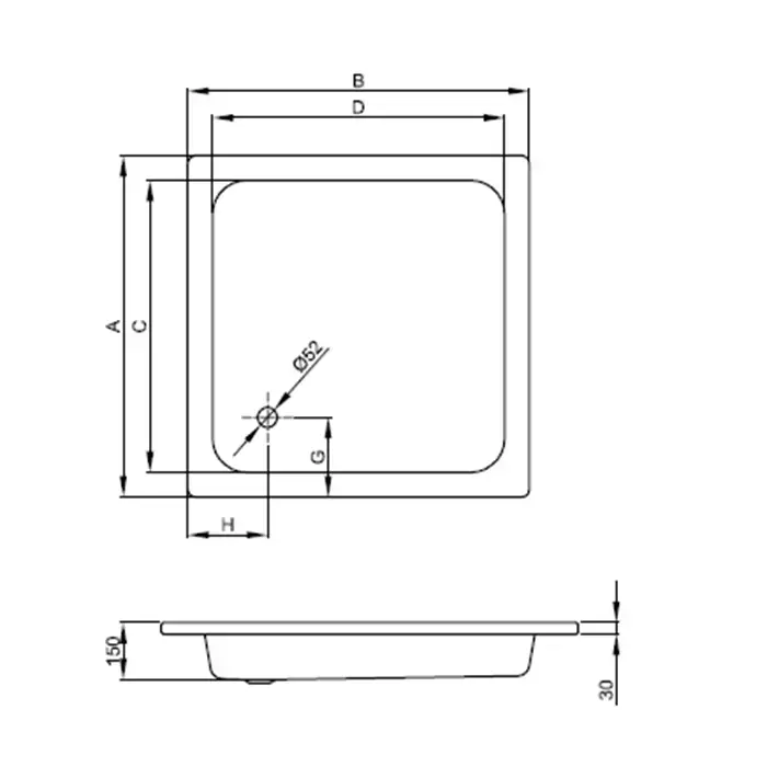 BETTEINTRA Душевой поддон,без шумоизоляции, квадратный 80х80хh15см, D52мм,белый, цвет белый