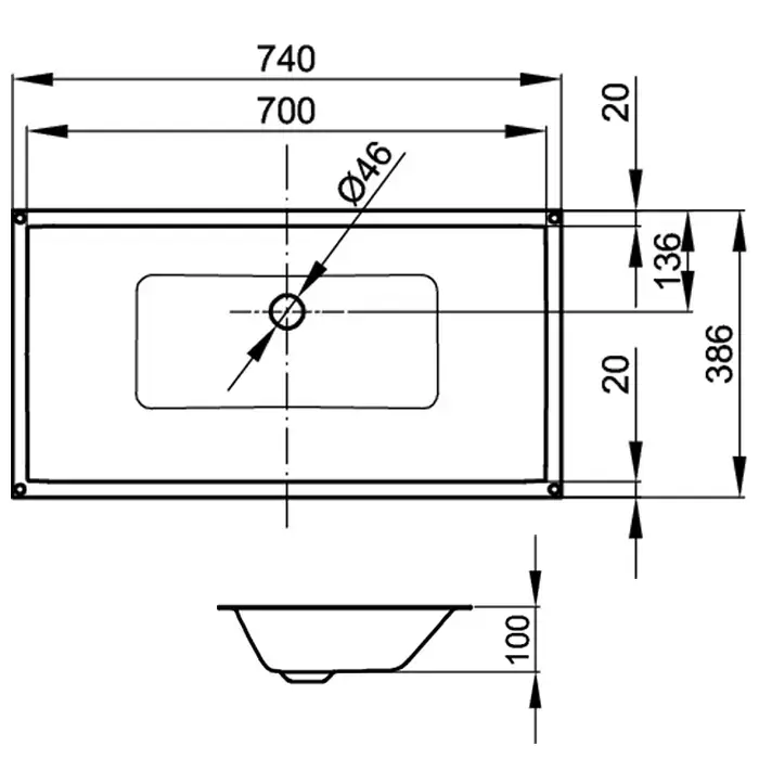 BETTE Loft Раковина встраиваемая снизу 740х386х100 мм, без перелива, без отв под см. цвет Ebony