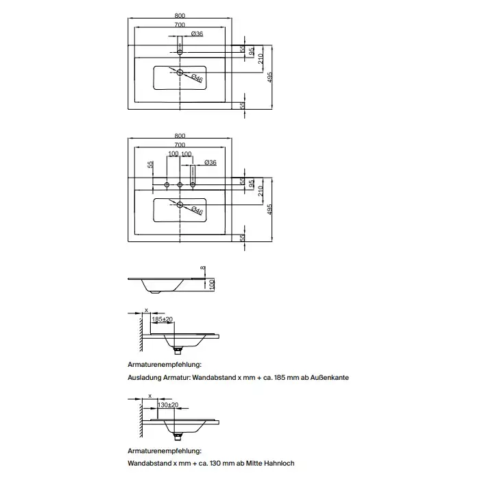BETTE Loft Раковина встраиваемая сверху 800х495х100 мм, без перелива, с 1 отв под см. цвет белый