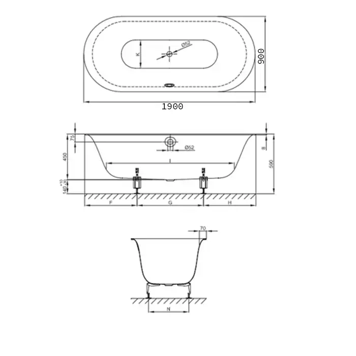 Bette Lux Oval Ванна встраиваемая 190x90x45 см, BetteGlasur ® Plus, цвет: белый