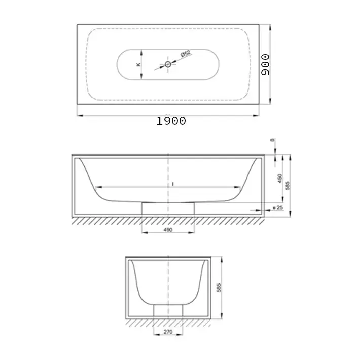 BetteLux SHAPE Каркас для ванны 3453 190x90см с панелью под слив, цвет/структура черная тонкая матовая структура 815