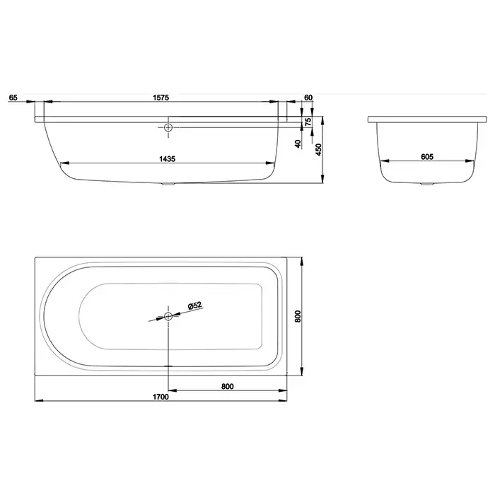 BETTE Ocean Ванна с шумоизоляцией 170х80х45, перелив спереди, белая BetteАнтислип Sense (для удлиненного слива-перелива)