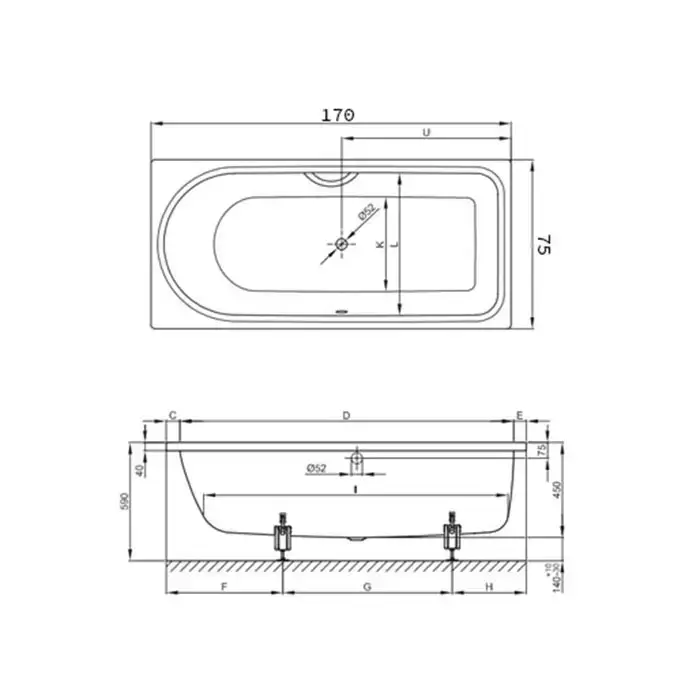 BETTE Ocean Ванна с шумоизоляцией 170х75х45, перелив сзади, с BetteGlasur ® Plus, белая (для удлиненного слива-перелива)