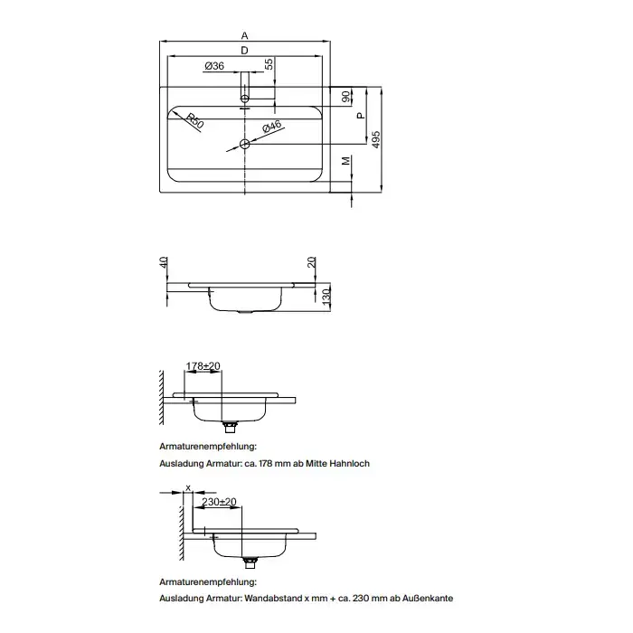BETTE One Раковина встраиваемая на столешницу 800×495×130 мм, с 1 отв под смес. с перел. с крепл. в компл.цвет белый (СПЕЦЦЕНА со склада)