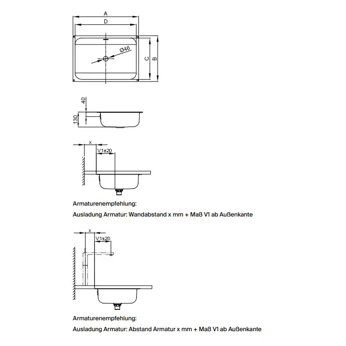 Bette One Раковина встраиваемая под столешницу 43.4×41.6×13см, без отв., с переливом, сталь, цвет: белый