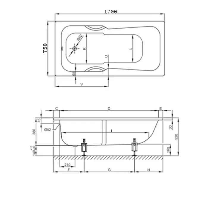 BETTE SET Ванна 170x75x38 , отв-я для перелива спереди, c покрытием BetteGlasur ® Plus цвет белый