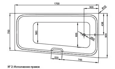 Bette Space M Ванна ассимметричная встраиваемая с шумоизоляцией 170х90/75х42 см, исполнение правое, цвет белый