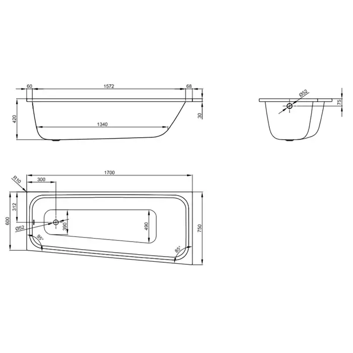 Bette Space S Ванна встраиваемая с шумоизоляцией 170х75х42 см, исполнение правое , цвет: белый