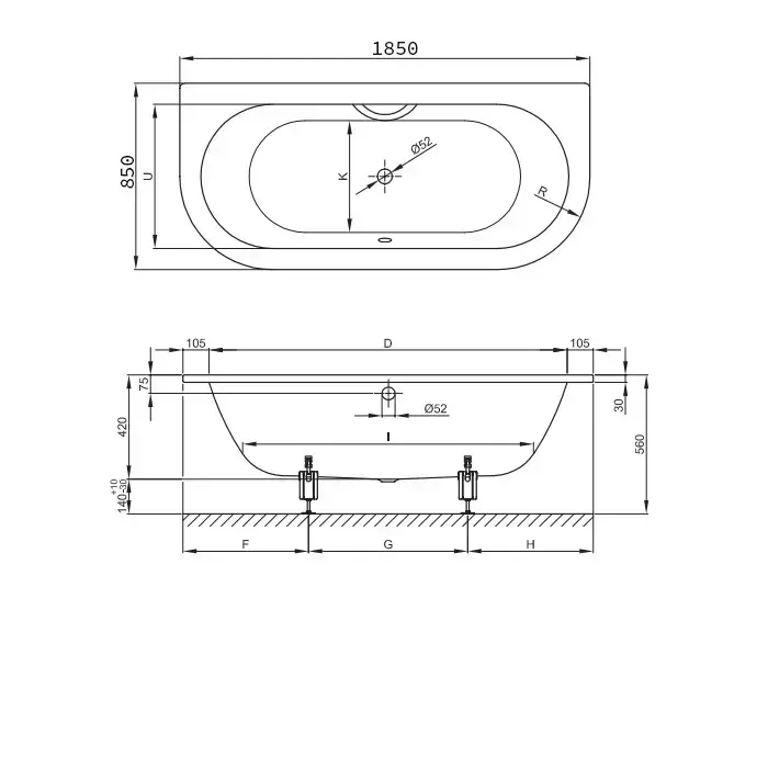 Bette Form 2020 Ванна с шумоизоляцией 170х75х42см, BetteGlasur® Plus, с комплектом ножек, встраиваемая, цвет: белый