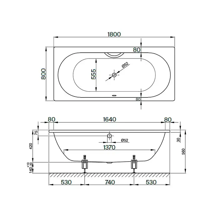 Bette Starlet Ванна 180x80см., встраиваемая, с шумоизоляцией, BetteАнтислип Sense, цвет: белый
