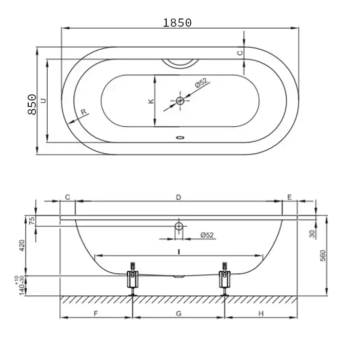 Bette Form 2020 Ванна с шумоизоляцией 170х75х42см, с комплектом ножек, встраиваемая, цвет: белый