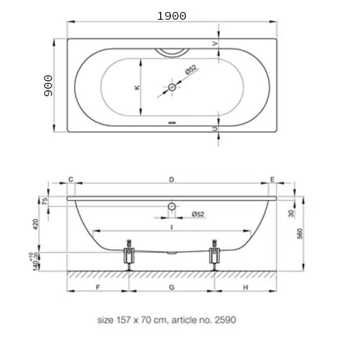 Bette Starlet Ванна с шумоизоляцией встраиваемая, 190х90х42см, BetteGlasur® Plus, цвет: белый