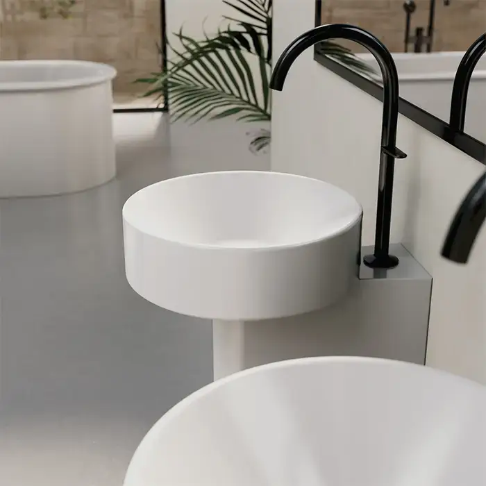 BETTE SunoPedestal Раковина пристенная 34*43,7*84см с 1 отв. под смеситель с сифоном, шумоизоляцией, крепежом, цвет белый