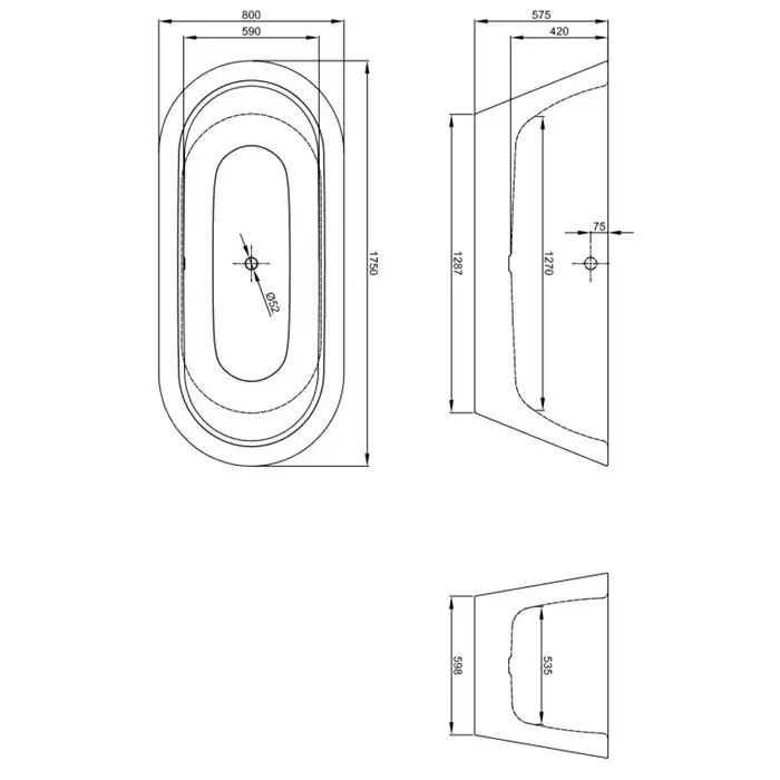 BETTE Starlet Oval Silhouette Ванна отдельностоящая с шумоизоляцией и экраном 175х80, цвет: белый