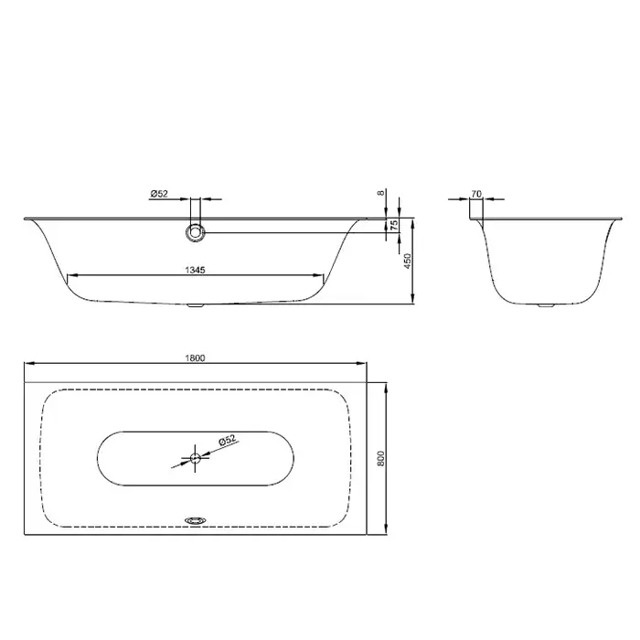 Bette Lux Ванна прямоугольная с шумоизоляцией 180x80x45 см, белая (для удлиненного слива-перелива)