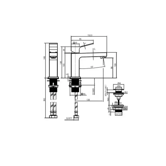 Bossini Aki Line Смеситель для раковины AKI-M с донным клапаном 1"1/4 и гибкая подводка из нерж. стали 3/8"., цвет: хром