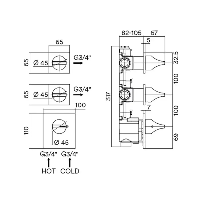 Bossini Apice Смеситель для душа, встраиваемый, термостатический, 2 запорных вентиля, внешняя часть, цвет: белый матовый