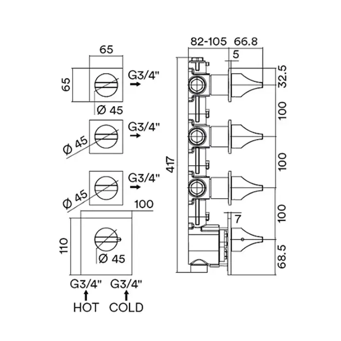 Bossini Apice Смеситель для душа, встраиваемый, термостатический, 2 запорных вентиля, внешняя часть, цвет: белый матовый