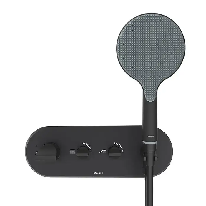 Bossini Apice Смеситель для душа, встраиваемый, термостатический, 2 запорных вентиля, с ручным душем и шлангом 1500 мм., с белыми делениями, цвет: черный мат