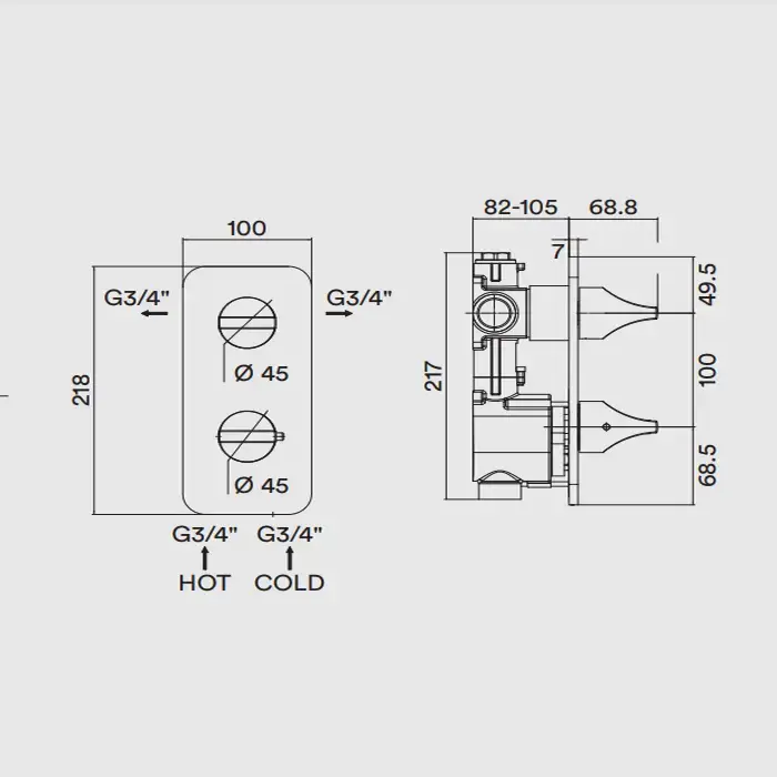 BOSSINI APICE Смеситель для душа встраиваемый, термостатический, 1 выход, внешняя часть, цвет хром
