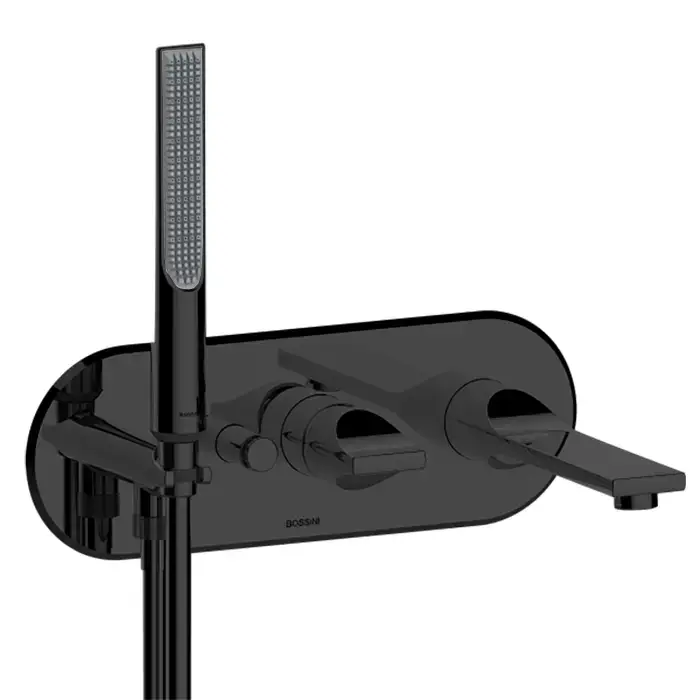 BOSSINI APICE Смеситель для ванны встраиваемый, однорычажный, с ручным душем Slim и шлангом 1500 мм., внешняя часть, цвет черный матовый