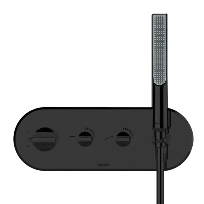 Bossini Apice Смеситель термостатический, на 2 выхода, с ручной душем и шлангом Cromolux 150см, цвет: черный матовый