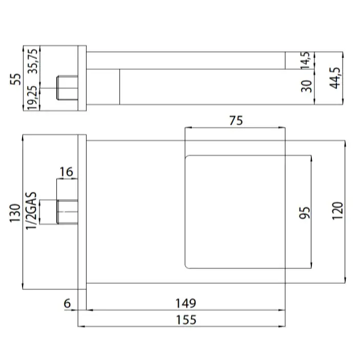 Bossini Bocca OLE' SQUARE Излив для душа, латунь каскадная струя 1/2, цвет: хром