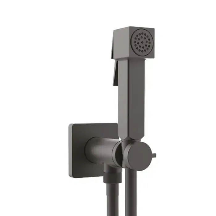 Bossini Cube Brass Гигиенический душ с прогрессивным смесителем, лейка металлическая, шланг Cromolux, цвет: черный матовый