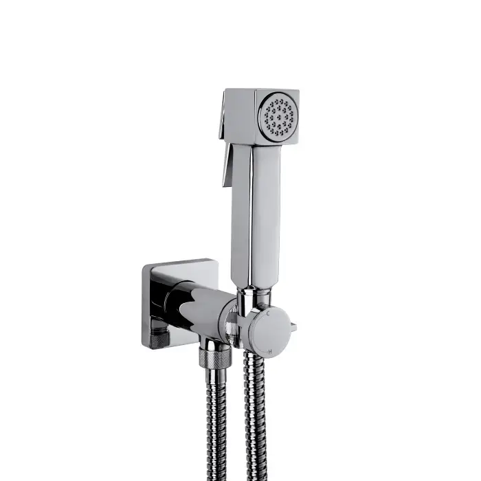 Bossini Cube Brass Гигиенический душ с прогрессивным смесителем, лейка металлическая, шланг металлический, цвет: хром