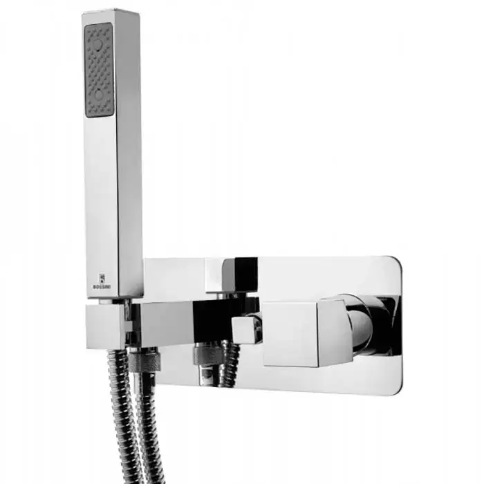 Bossini Cube Смеситель для душа, встраиваемый, с девиатором на 2 выхода, ручной душ с держателем, подключение на 1/2", цвет: хром