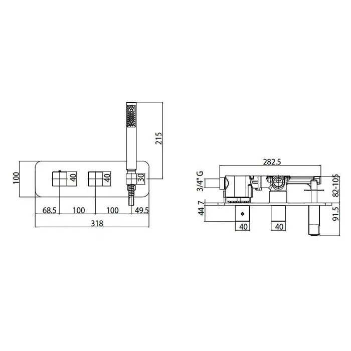 Bossini Cube Комплект: Термостат для душа, встраиваемый, с девиатором на 2 выхода, ручной душ с держателем, подключение на 3/4", цвет: хром